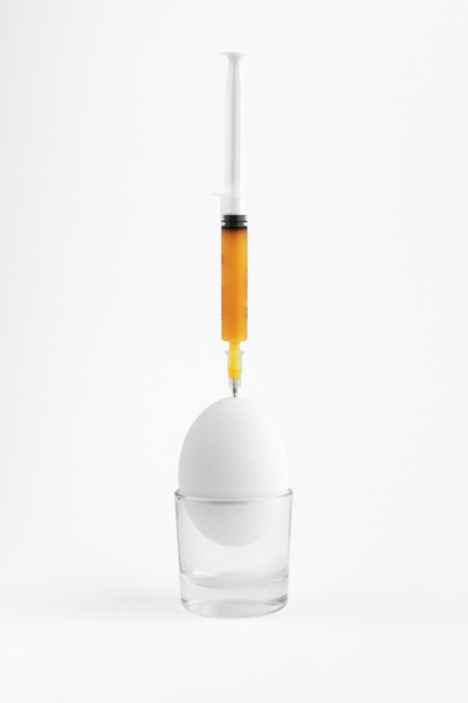 Injecting the yolk into the egg with a syringe